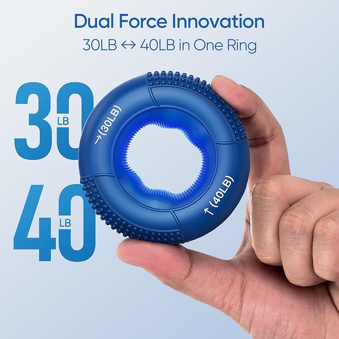 - ๐๐๐ฎ๐น ๐ฅ๐ฒ๐๐ถ๐๐๐ฎ๐ป๐ฐ๐ฒ ๐ฅ๐ถ๐ป๐ด๐ ๐ณ๐ผ๐ฟ ๐ฆ๐บ๐ฎ๐ฟ๐๐ฒ๐ฟ ๐ง๐ฟ๐ฎ๐ถ๐ป๐ถ๐ป๐ด: Each ring offers two resistance levels depending on how you squeezeโe.g., 30LB vs 40LBโgiving you double the value in one tool. Perfect for progressing from rehab to strength training without switching equipment.