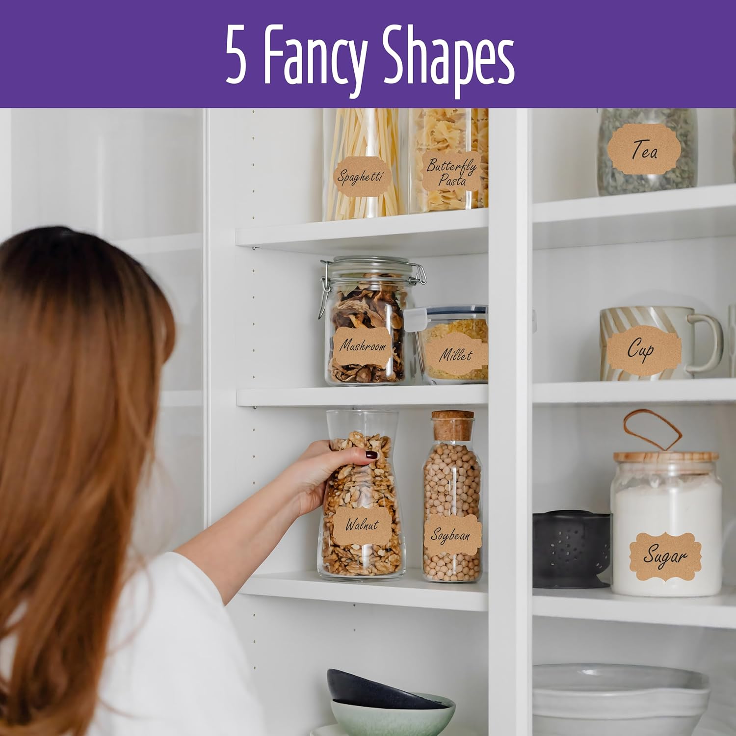 300 PCS Kraft Blank Stickers, 5 Fancy Shapes Labels Blank Stickers Roll Rustic Name Tags with Permanent Adhesive for File Folders, Food Jars, Gift Tags, Home Office Business Uses (2” x 3”)