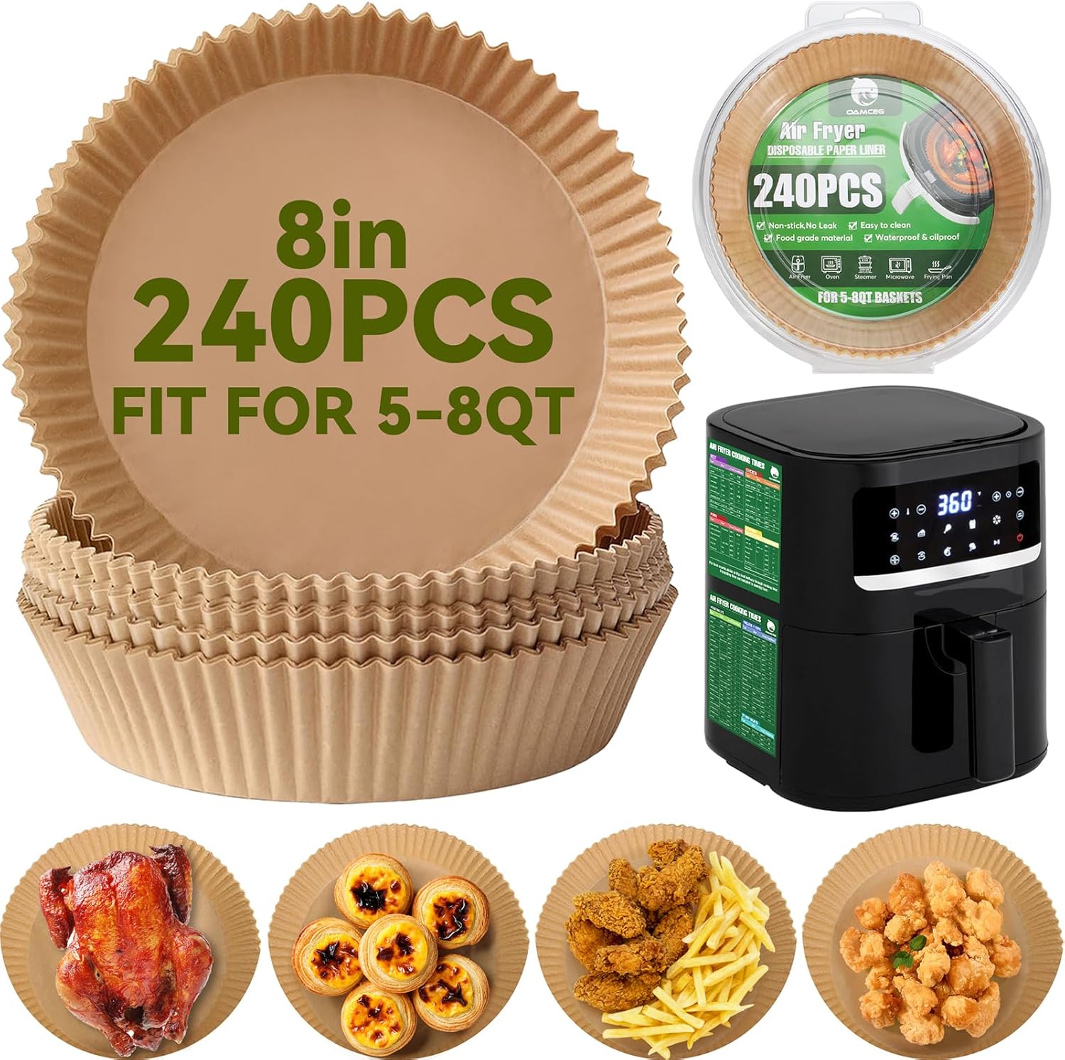 Air Fryer Liners,240 PCS Round Non-stick Disposable Paper Liners for 5-8QT, OAMCEG 8 inch Air Fryer Parchment Baking Paper for Frying, Baking, Cooking, Roasting and Microwave
