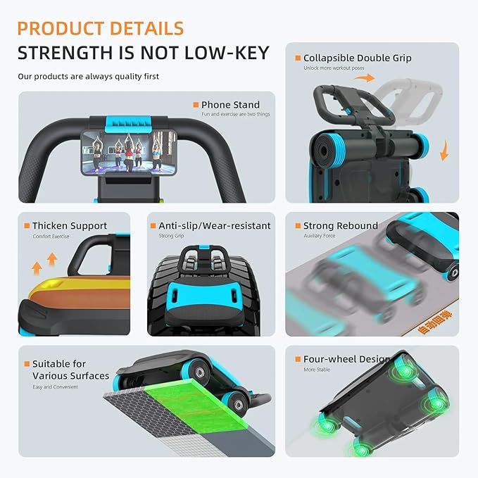 - 【 Compact and Portable 】: This product measures 16.29x8.46x17 inches, with a dual wheel length of 11.8 inches, a net weight of 6.4 pounds, and a load-bearing capacity of 1300 pounds. It is compact in structure and easy to store, making it ideal for home use or outdoor fitness enthusiasts who need space saving solutions.