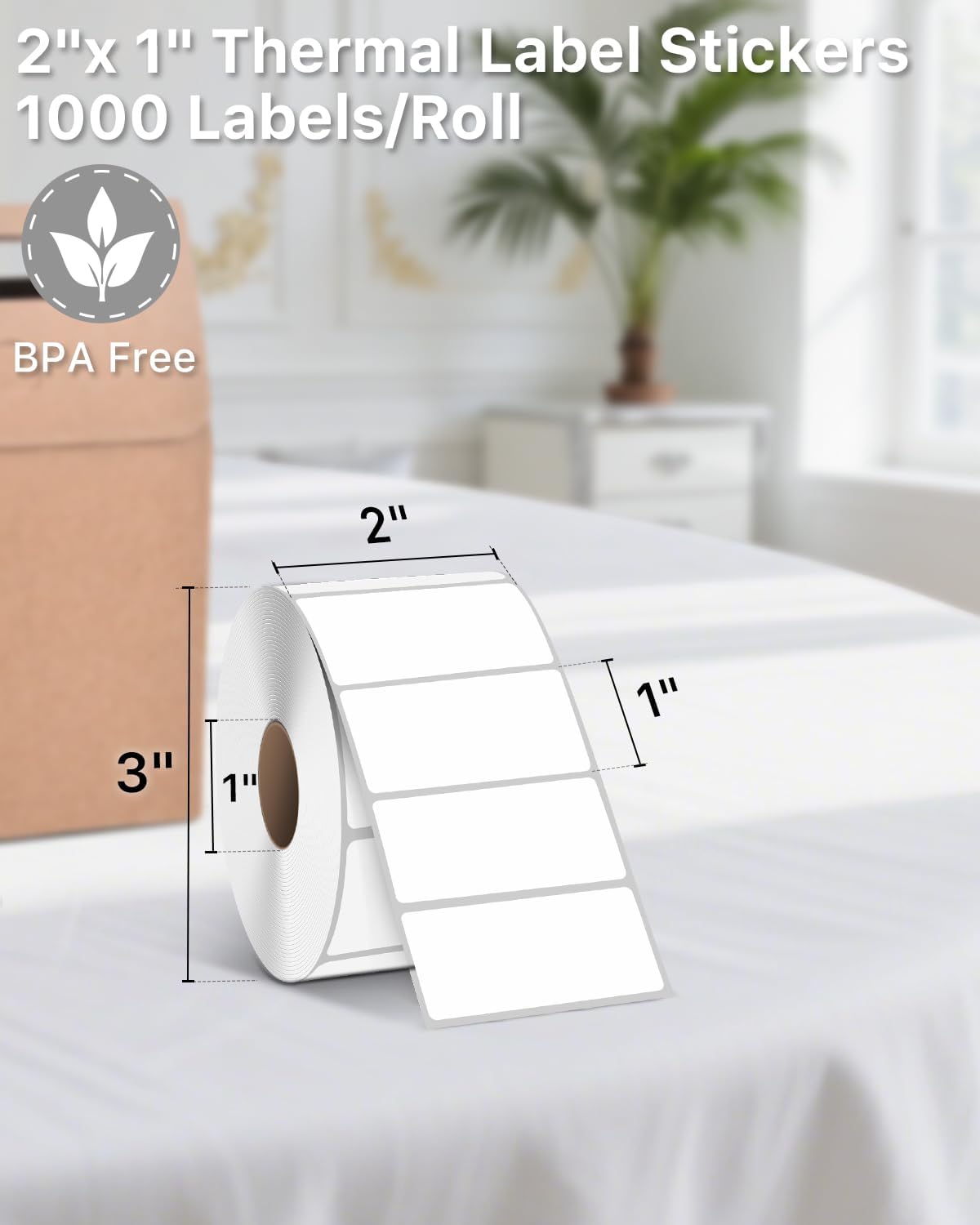 - Specifications: iEager 2" x 1" white thermal label with perforation line, 1000 labels/roll. Paper tube inner diameter 1". No ink, toner or ribbons needed