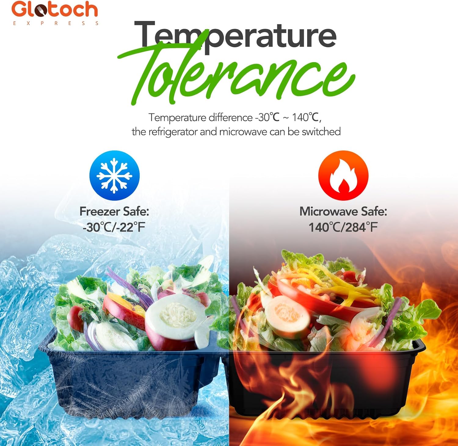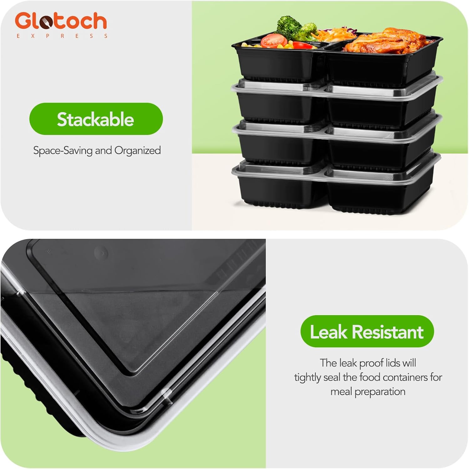Glotoch 50 Pack (100-Piece) 34oz Meal Prep Containers Reusable with Lids 3-Compartment Containers Microwave, Freezer, Dishwasher Safe - Leakproof Durable To Go Take Out Plastic Food Storage