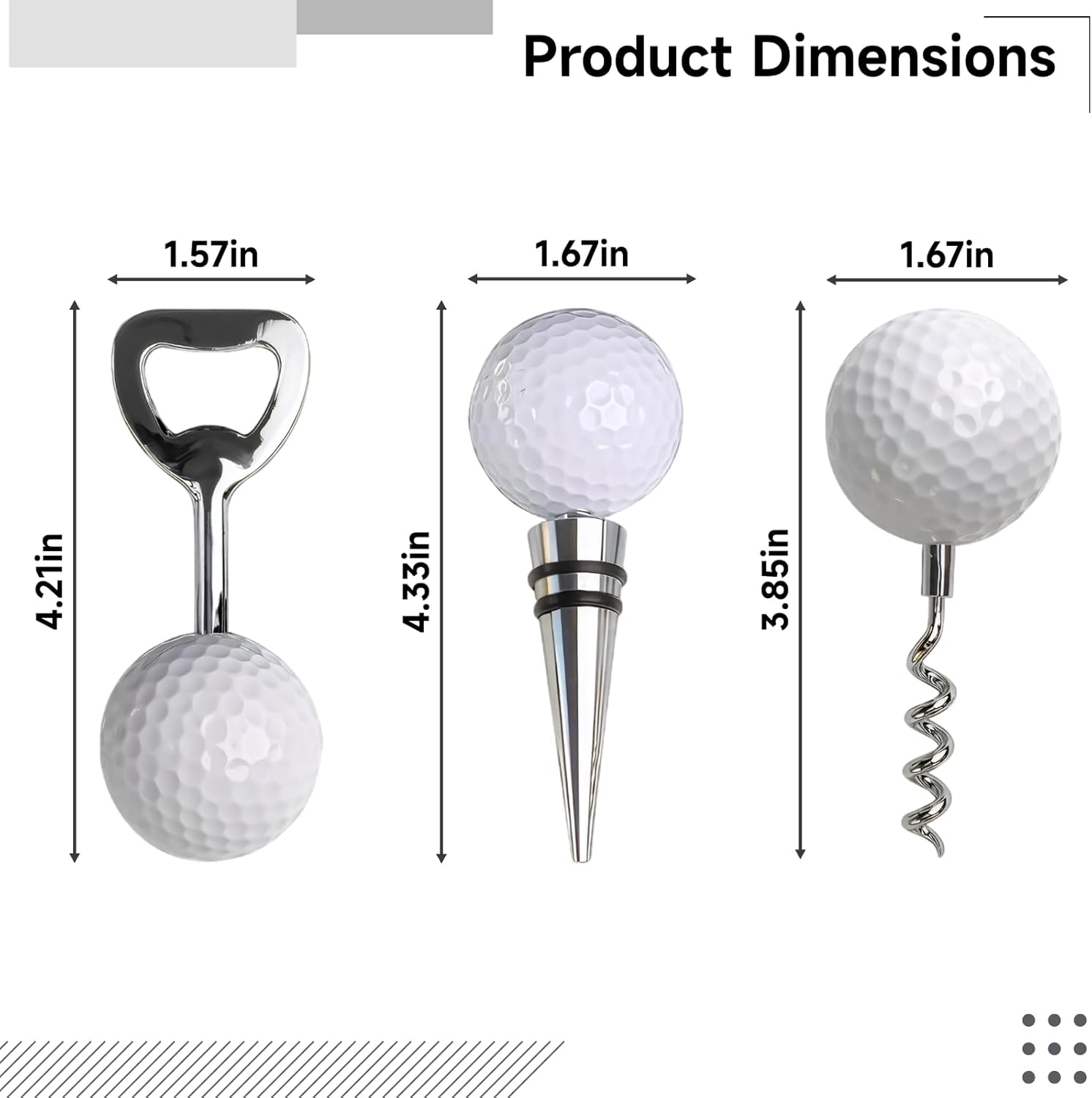 Golf Ball Wine Bottle Opener and Stopper Set (3 PCS), Zinc Alloy Wine Accessories with Stylish Golf Ball Design (1 Wine Bottle Opener and 2 Stoppers), Gift for Golf Enthusiasts