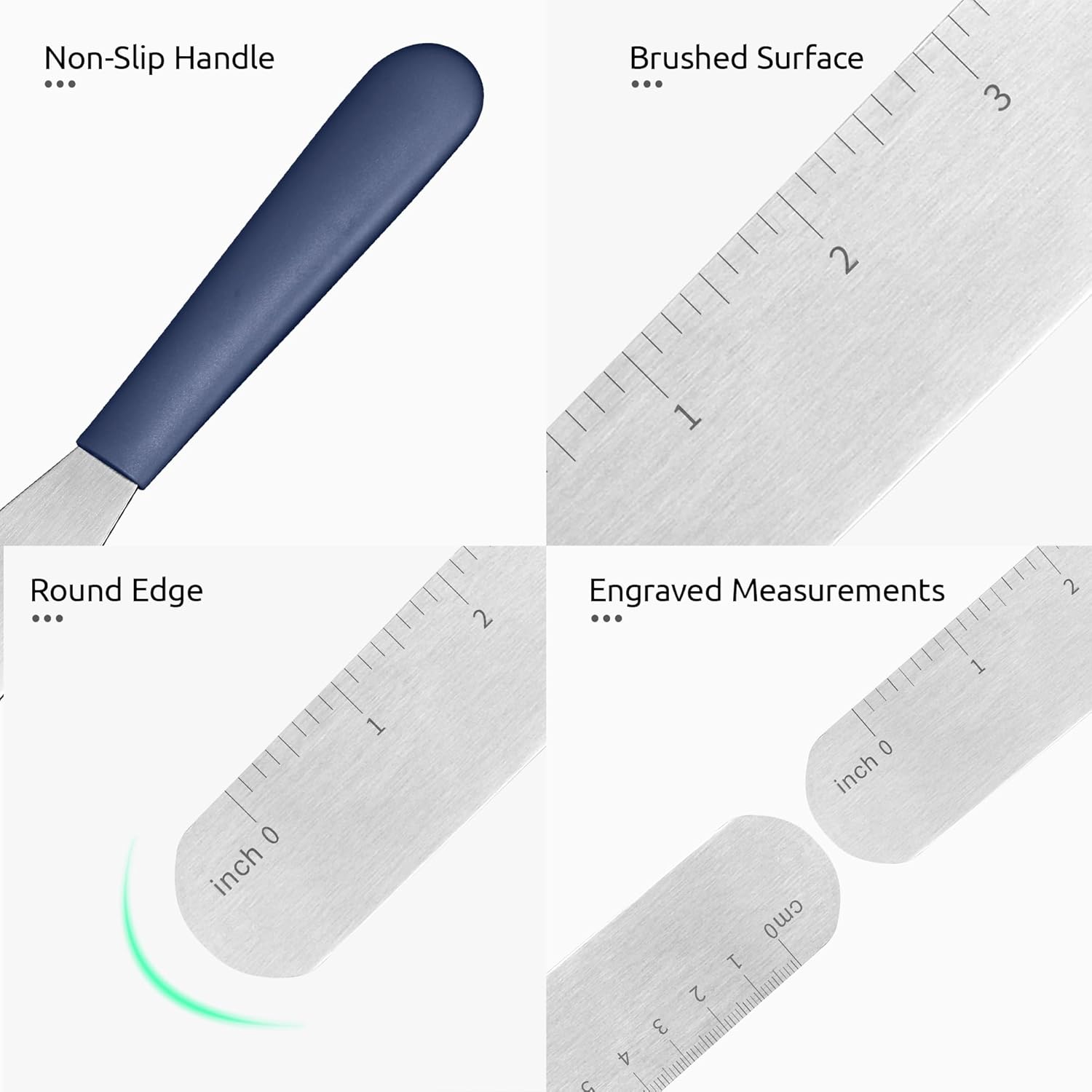 U-Taste Cake Icing Spatulas Set: Straight Decorating Frosting Knife with 6", 8", 10" Flat Thinner Stainless Steel Blade, Flexible Smoothing Spreading Tools with Comfortable PP Handle (Midnight Blue)