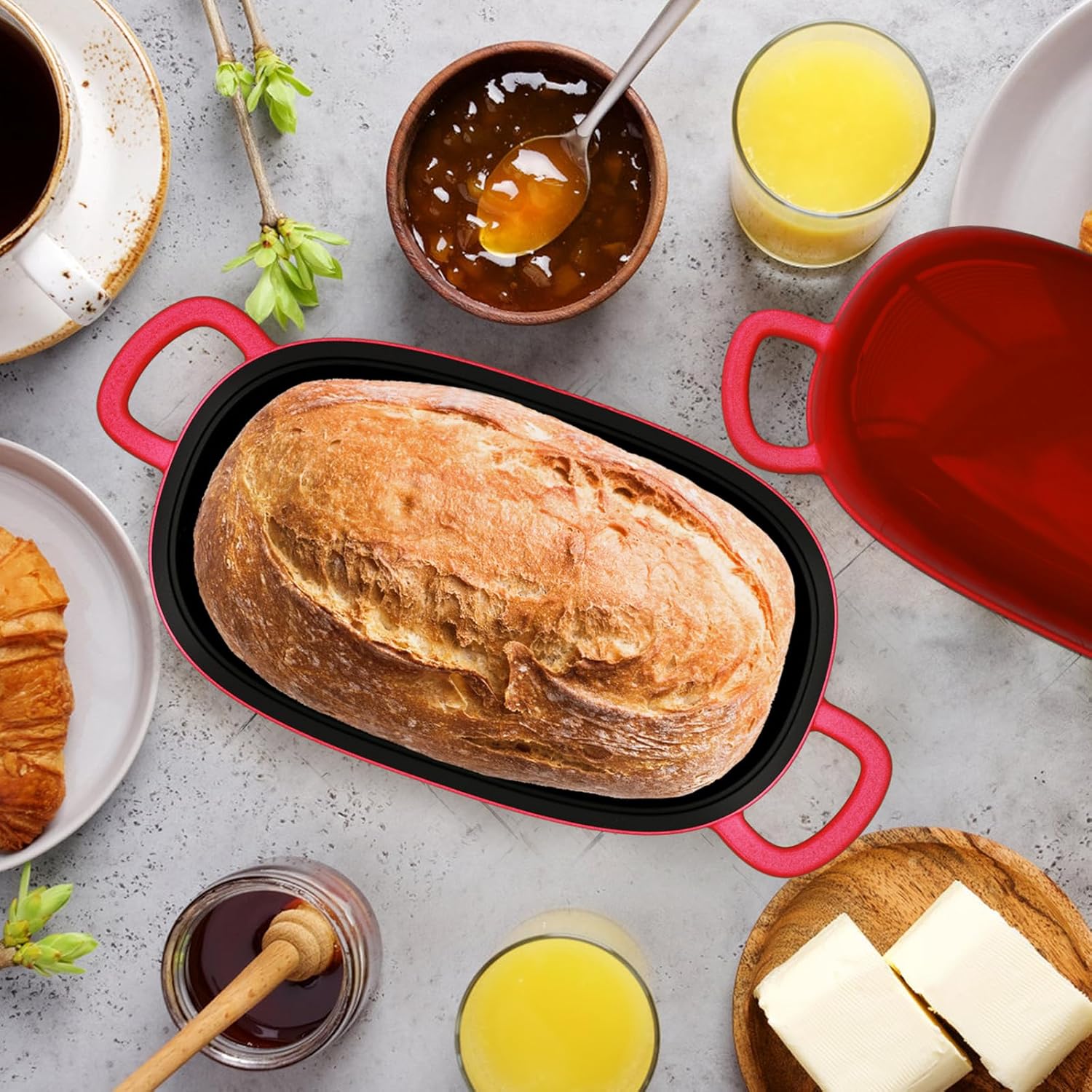Dutch Oven for Bread Baking - 2.5QT Bread Pans for Homemade Bread Cast Iron Bread Pan Dutch Oven Loaf Pan with Lid and Loop Handles for Homemade Breadmaking, Red