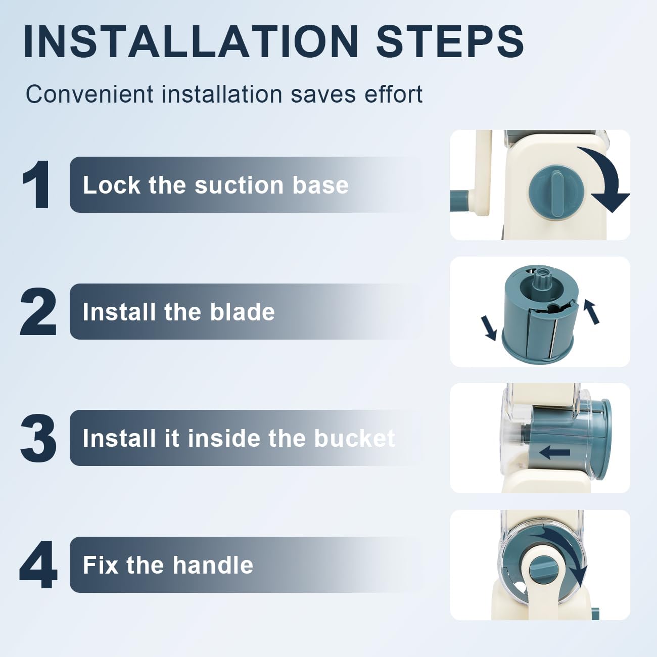 - Sturdy Suction Base: Equipped with a robust suction base, our handheld rotary cheese shredder provides stability during use, ensuring safety and reducing mess in your kitchen as you shred cheese with ease.