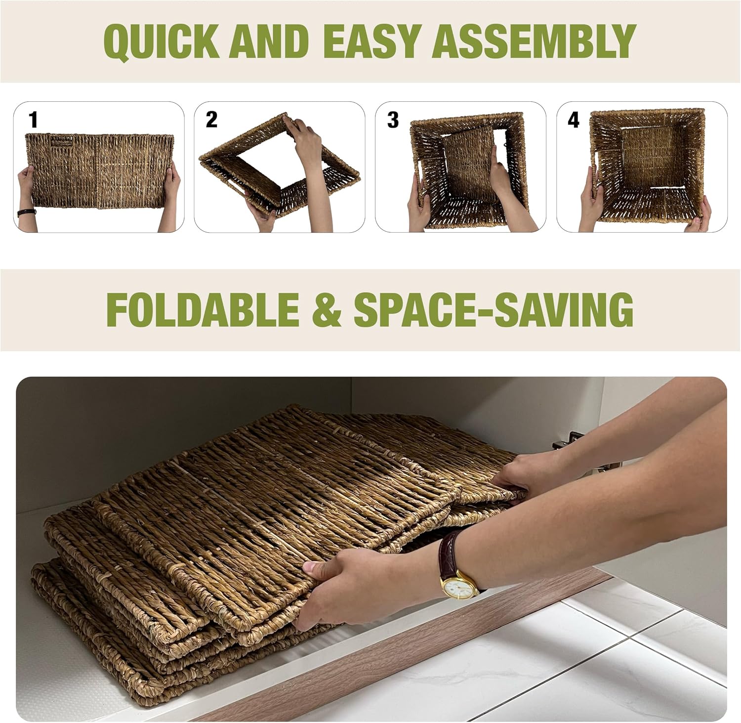 - Strong Woven Build - Handwoven bulrush and a reinforced metal frame keep the bins sturdy. No sagging, even when full.