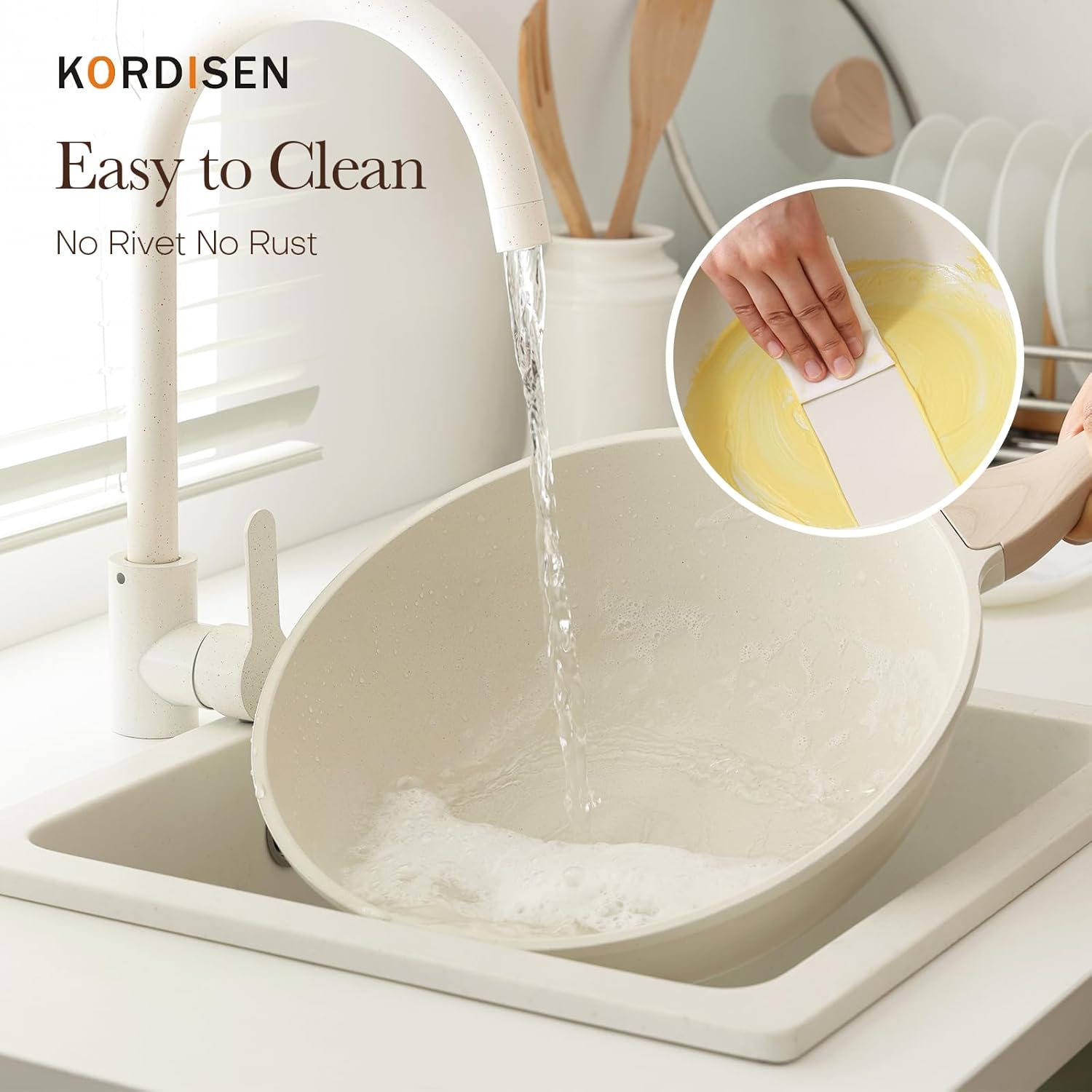 Nonstick Wok with Lid, 12 Inch Woks & Stir-fry Pans, Healthy Coating Induction Cookware, Compatible with All Stovetops, PFOA Free (Cream White)