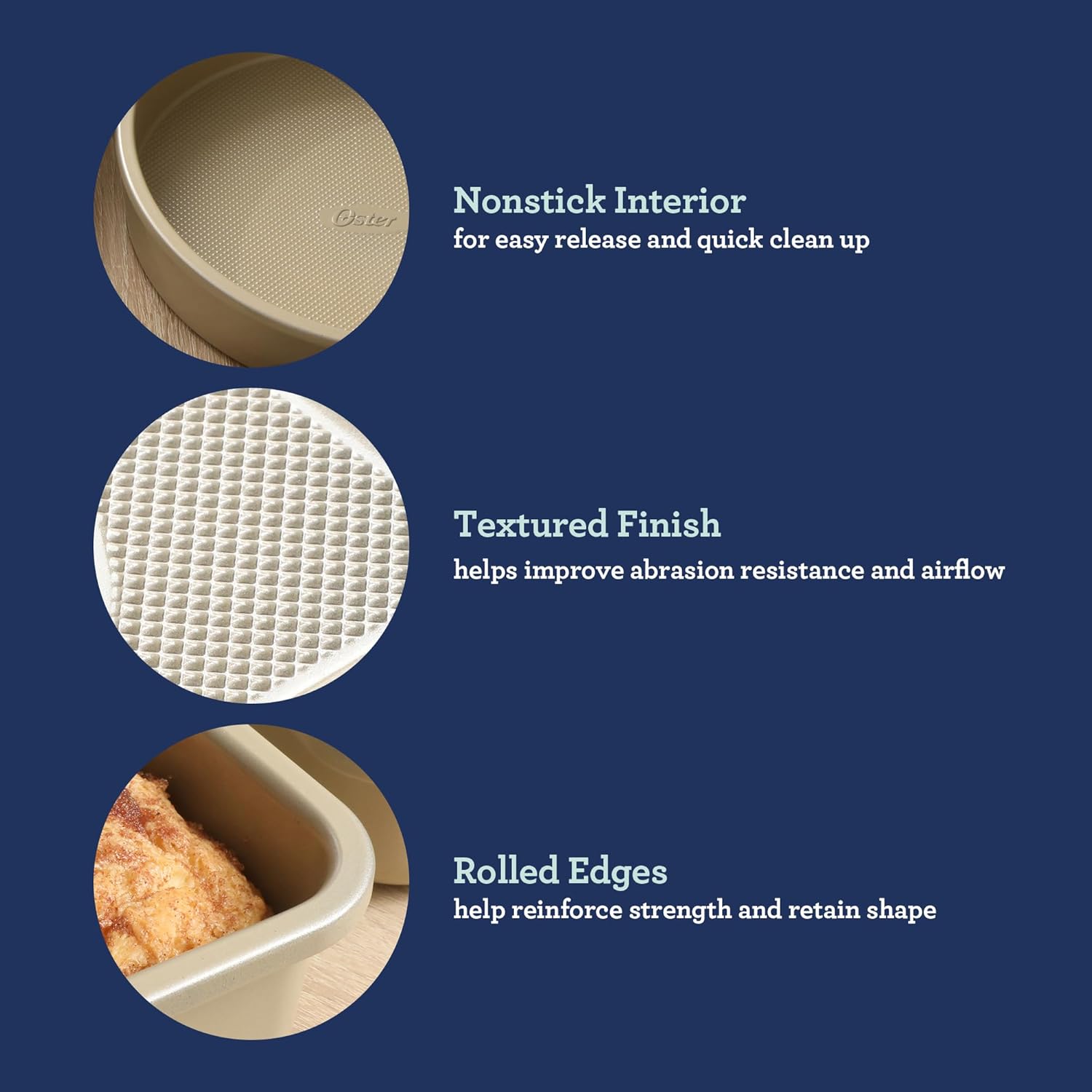 - TEXTURED FINISH: The interior also features a textured finish to help improve abrasion resistance. It protects each piece of bakeware from scratching and scraping. It also encourages better airflow to avoid overcrisping and producing burnt edges.