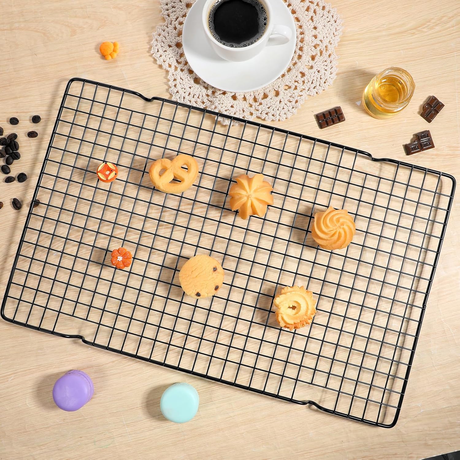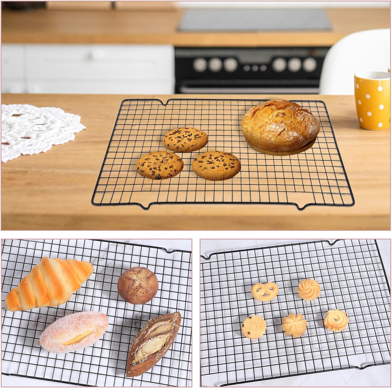 - 【Suitable size】Each cooling rack measures 40x25 cm (16x10 inches) with a grid distance of 15mm. The compact design is easy to store and carry without taking up too much space in the kitchen.