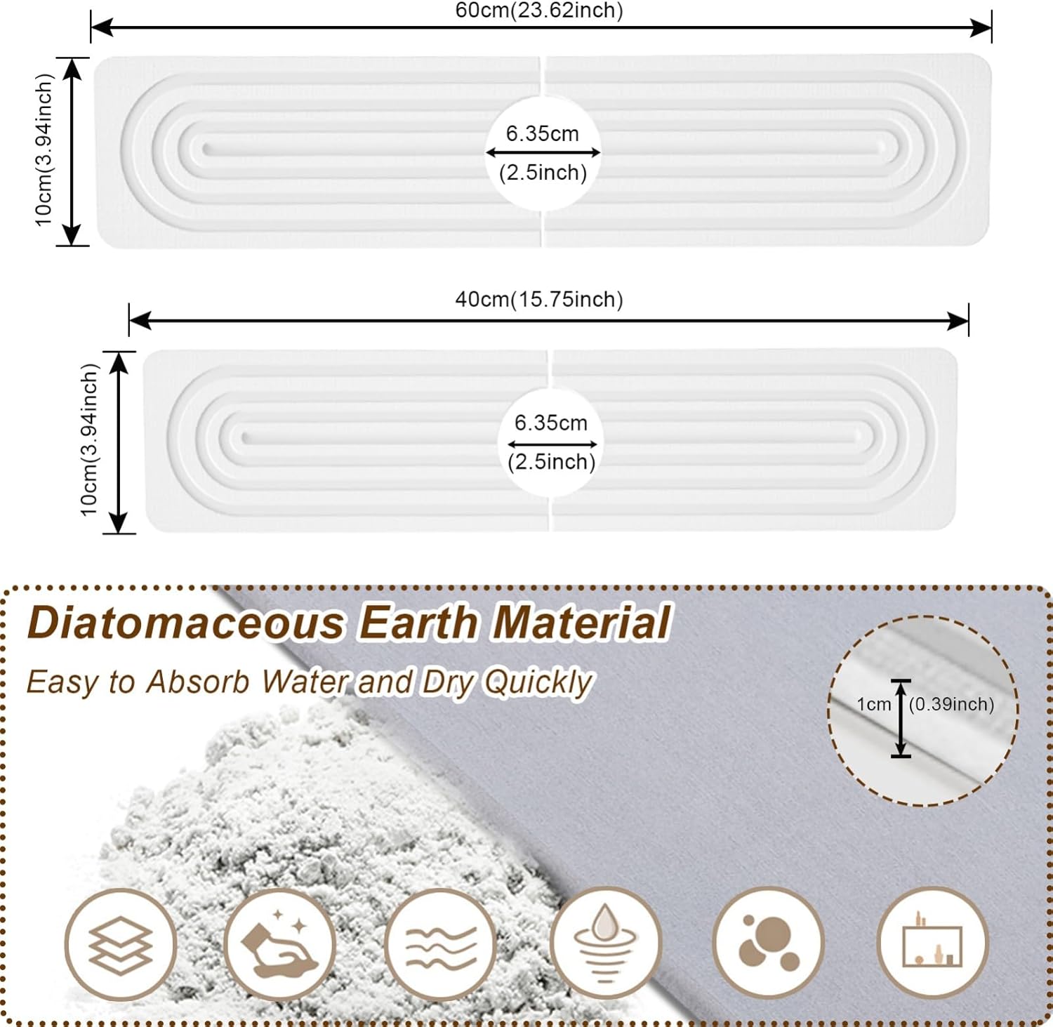 Faucet Mat for Kitchen Sink, Diatomite Super Absorbent Fast Drying Stone Sink Tray for Bathroom Kitchen Sink Splash Guard(Square White,23.6x3.9in)