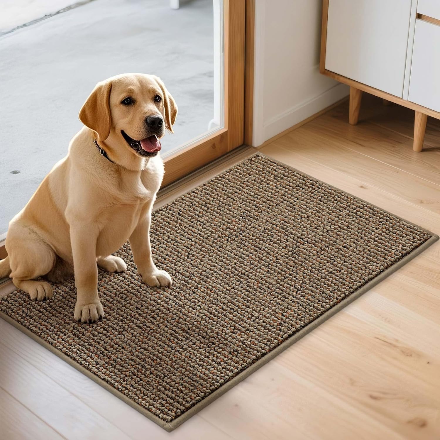 JSEI Dirt Trapper Door Mat 20"x32" Non-Slip Washable Entrance Mat, Dog Doormats, Absorbent & Fade-Resistant Floor Mats, Low Profile Welcome Mats for Entryway, Front Door, and Inside Entrance, Beige