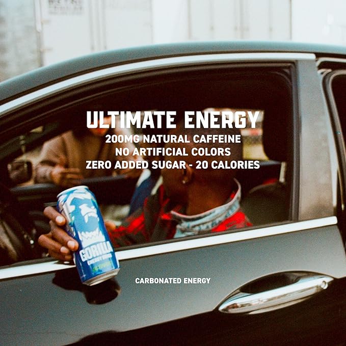 - 200MG OF NATURAL CAFFEINE: Gorilla energy drinks deliver bold, smooth, and refreshing energy with zero artificial colors or flavors. This great-tasting natural and carbonated energy drink contains no added sugar and is powered by 200mg of natural caffeine from green coffee beans and tea for smooth, clean energy.