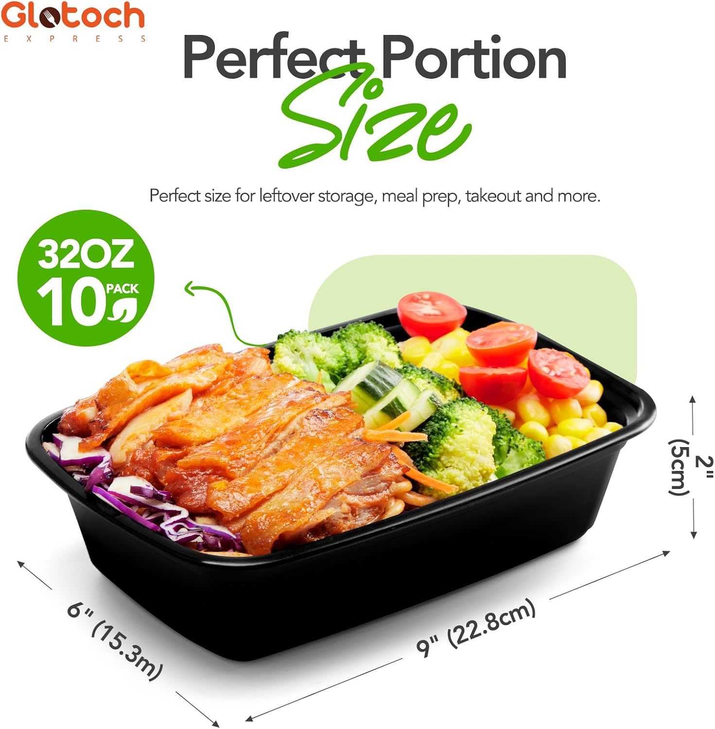 Glotoch 32oz Meal Prep Containers, 10 Pack (20-Piece) Reusable Food Prep Containers with Lids Microwave, Freezer, Dishwasher Safe Leakproof Durable Plastic Food Storage Bento Box To Go Take Out