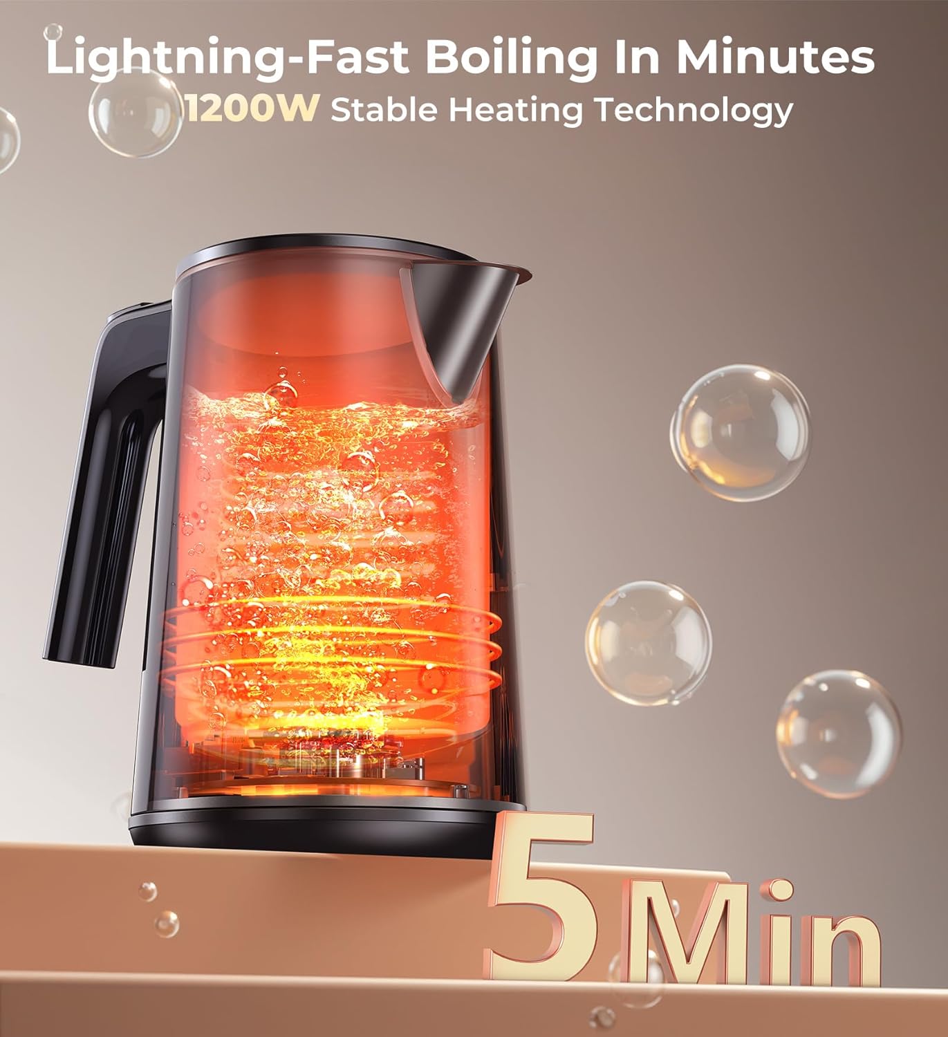 - 【Smart Efficient Electric Kettle】Designed for speed and convenience, this electric tea kettle boils water in minutes. Its automatic shutoff activates when water reaches the desired temperature or when the kettle is empty, saving energy and preventing overheating