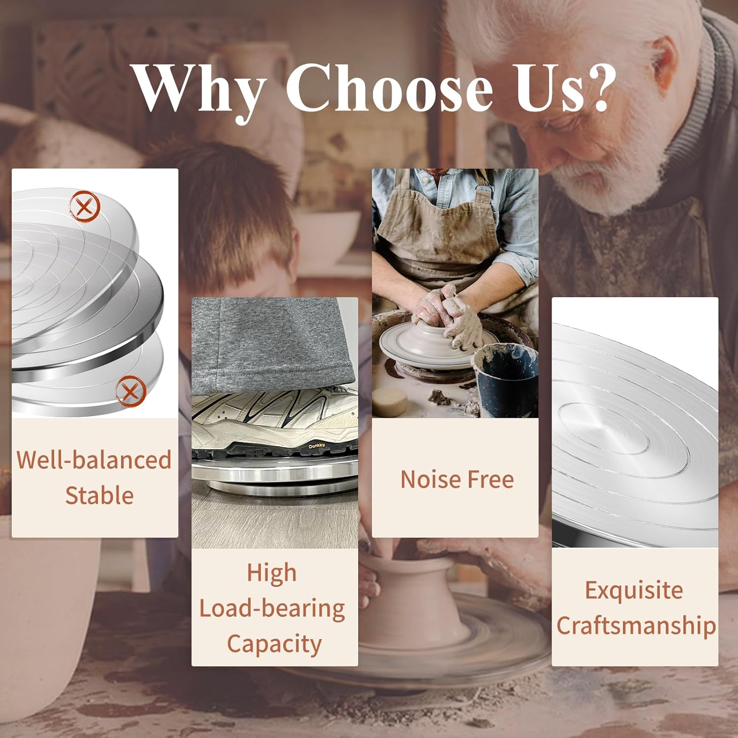 - Looking for a durable, heavy-duty pottery wheel ? ——Our sculpting wheel is designed to be fully well balanced, ensuring smooth and even rotation for an optimal crafting experience. The strong load-bearing capacity makes it ideal for handling various clays and large projects without compromising performance.