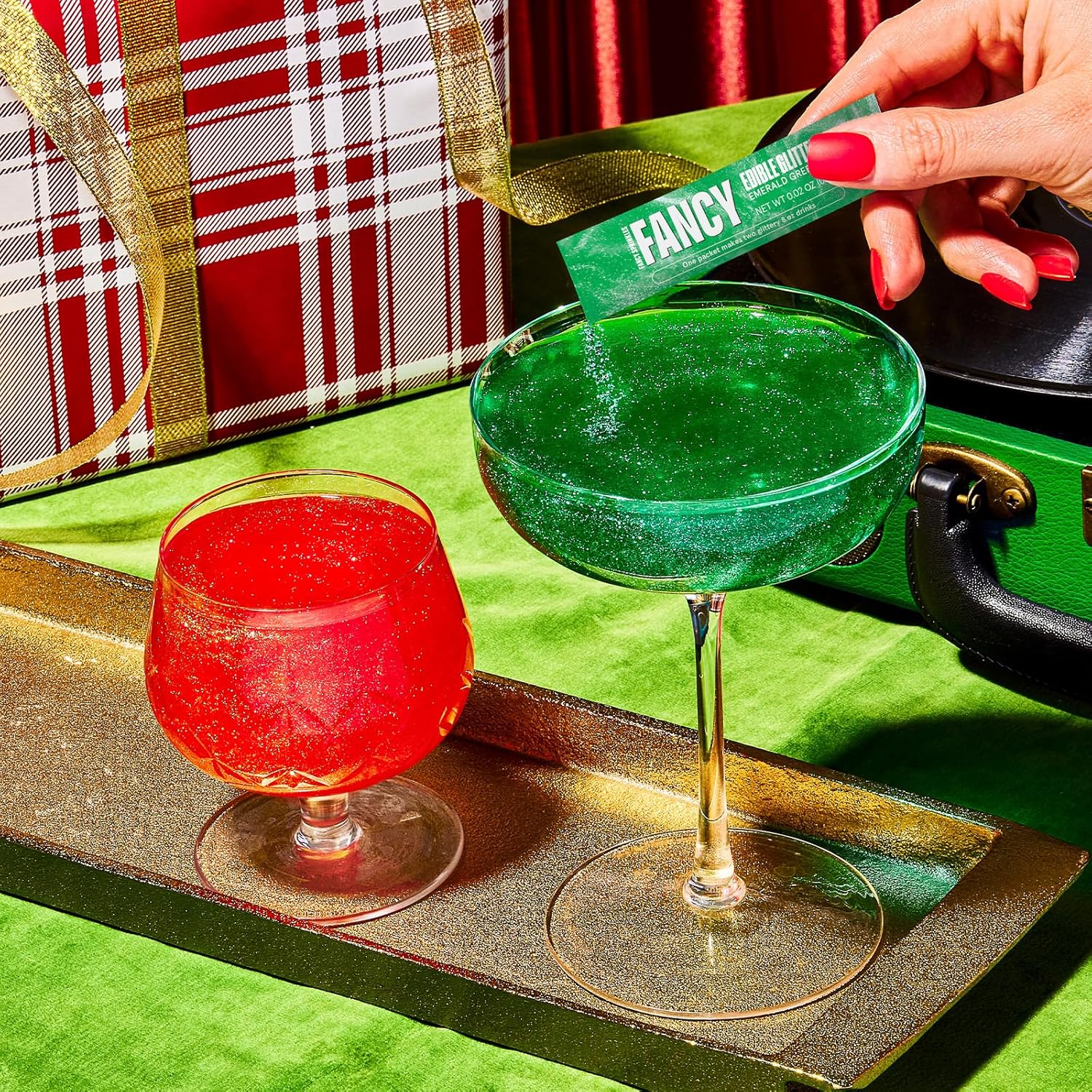 Fancy Sprinkles Mistletoe Magic Edible Glitter Packets Portable & On-The-Go for Sparkling Drinks, Champagne, Cocktails, Wine, Beer, & more. (2 Pack)