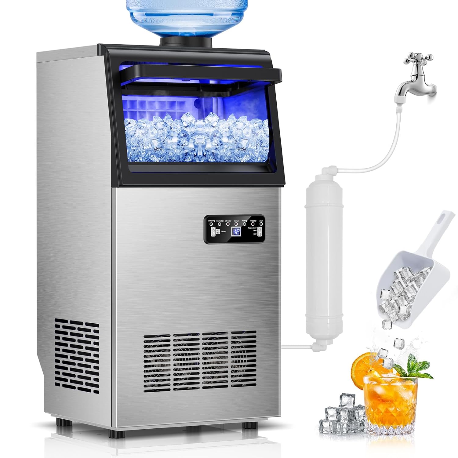 - The Freestanding Ice Maker Machine supports tap water. The premium water filter turns tap water into pure water, resulting in crystal clear and harder ice cubes that are cloudless and chewable. Perfect for commercial ice machines and household ice makers.