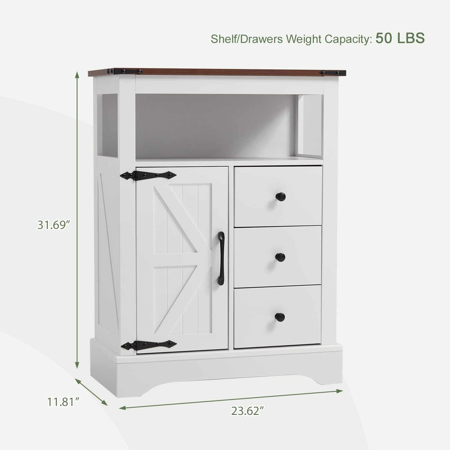 - 【FARMHOUSE RUSTIC STYLE】Crafted from sturdy engineered wood with a distressed natural wood grain top, this cabinet enhances your home with a charming farmhouse aesthetic. The magnetic doors with metal handles ensure smooth and effortless opening.