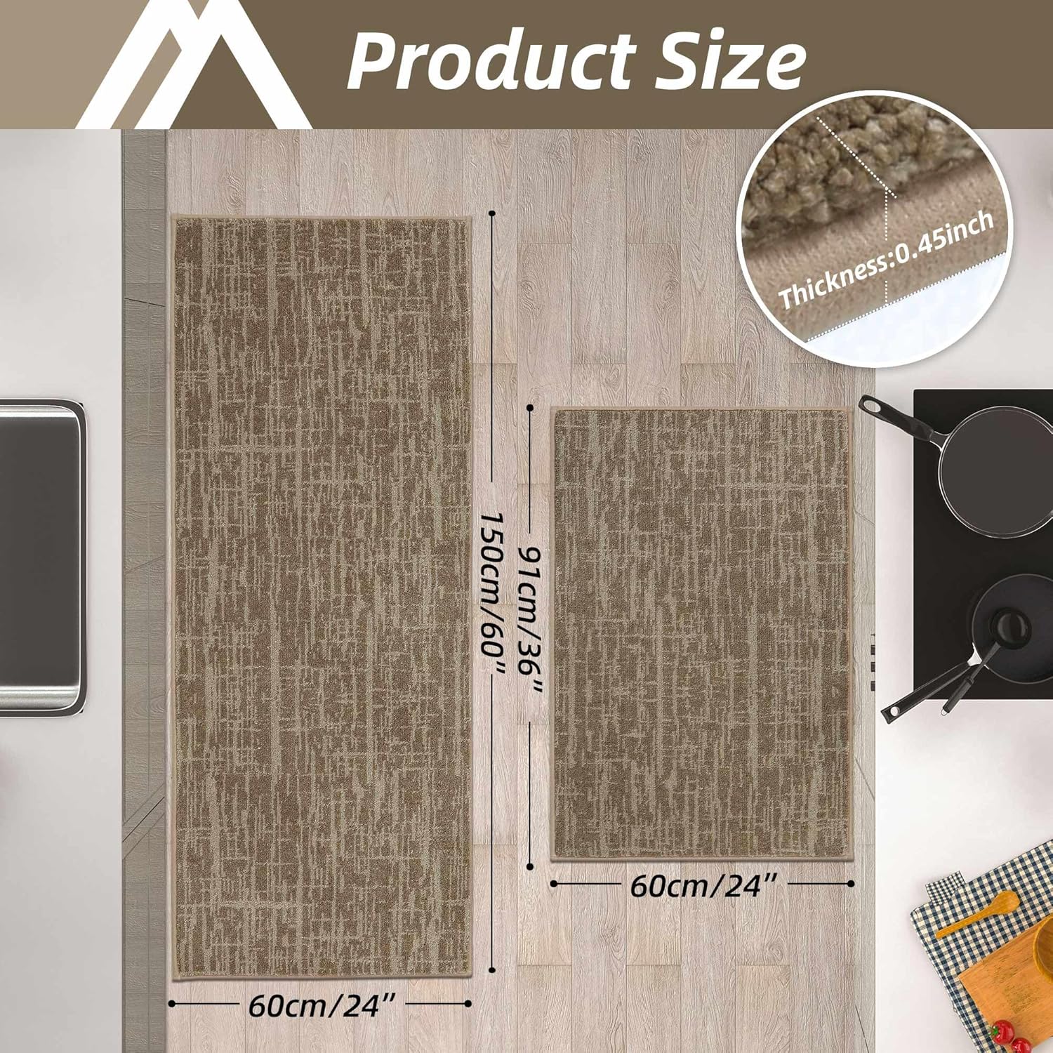 COSY HOMEER Kitchen Rugs Non Slip Washable 24"x36"+24"x60" Absorbent Soft Kitchen Mats for Floor Polyester Kitchen Runner Rug Sets of 2 Kitchen Floor Mats for Sink Mat,Hallway,Laundry,Taupe