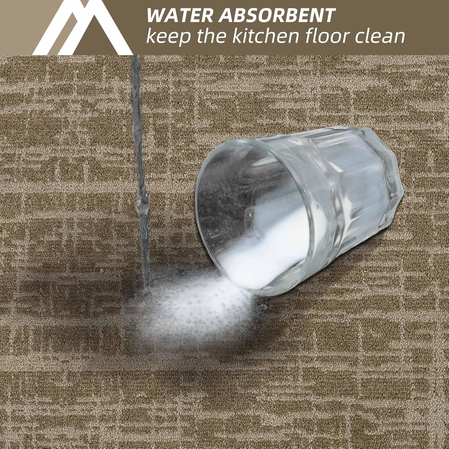 COSY HOMEER Kitchen Rugs 20"x32"+20"x48" Absorbent Soft Kitchen Mats for Floor Non Slip Kitchen Runner Rug Polyester Washable Kitchen Floor Mats for Sink Mat,Hallway,Laundry,Taupe
