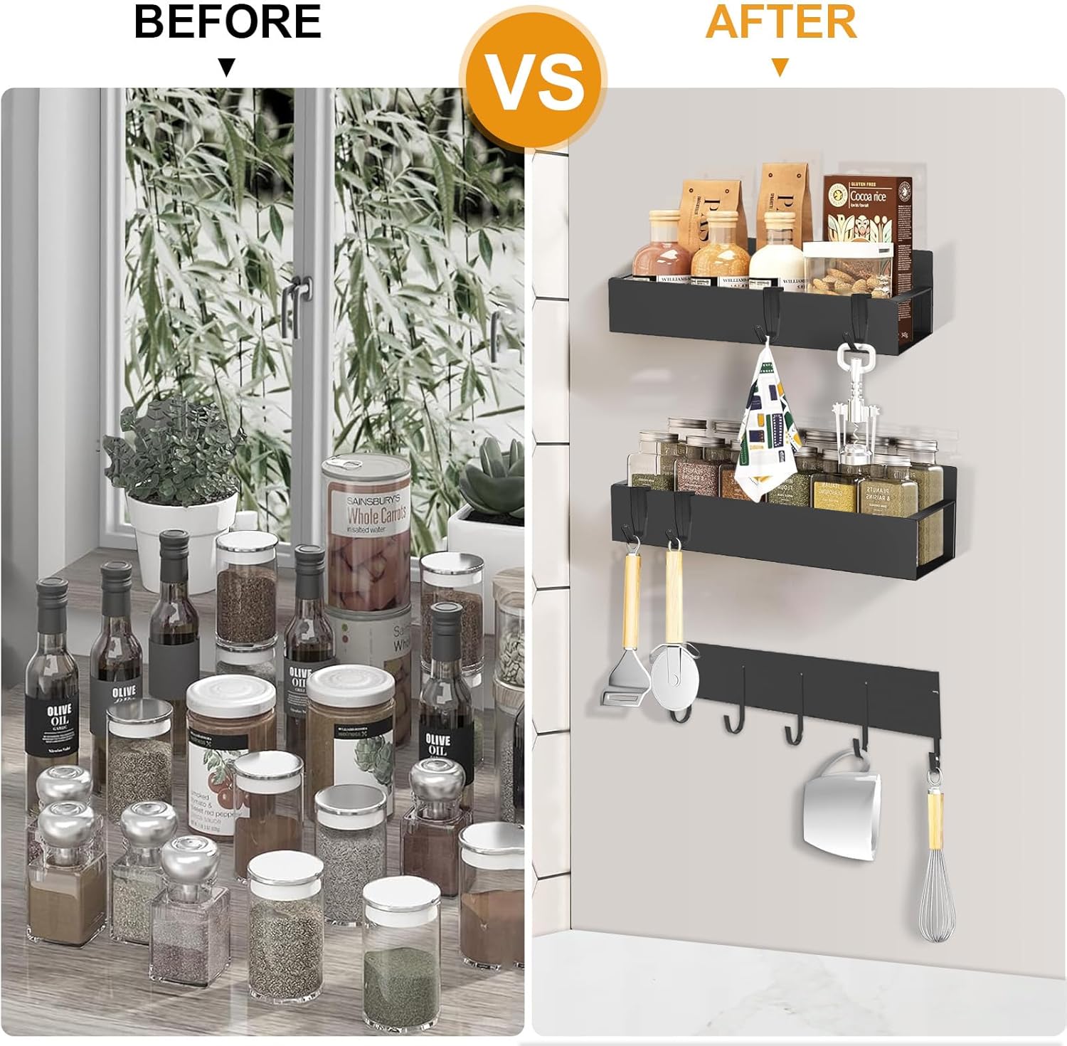- HIGH QUALITY MATERIAL:Spice rack organizer is made of thickened carbon steel material with special treatment, with thick grid line panel and hollowed out bottom, which effectively prevents water and grease erosion, firm and durable. The edges are smooth and rounded, not hurt your hands.