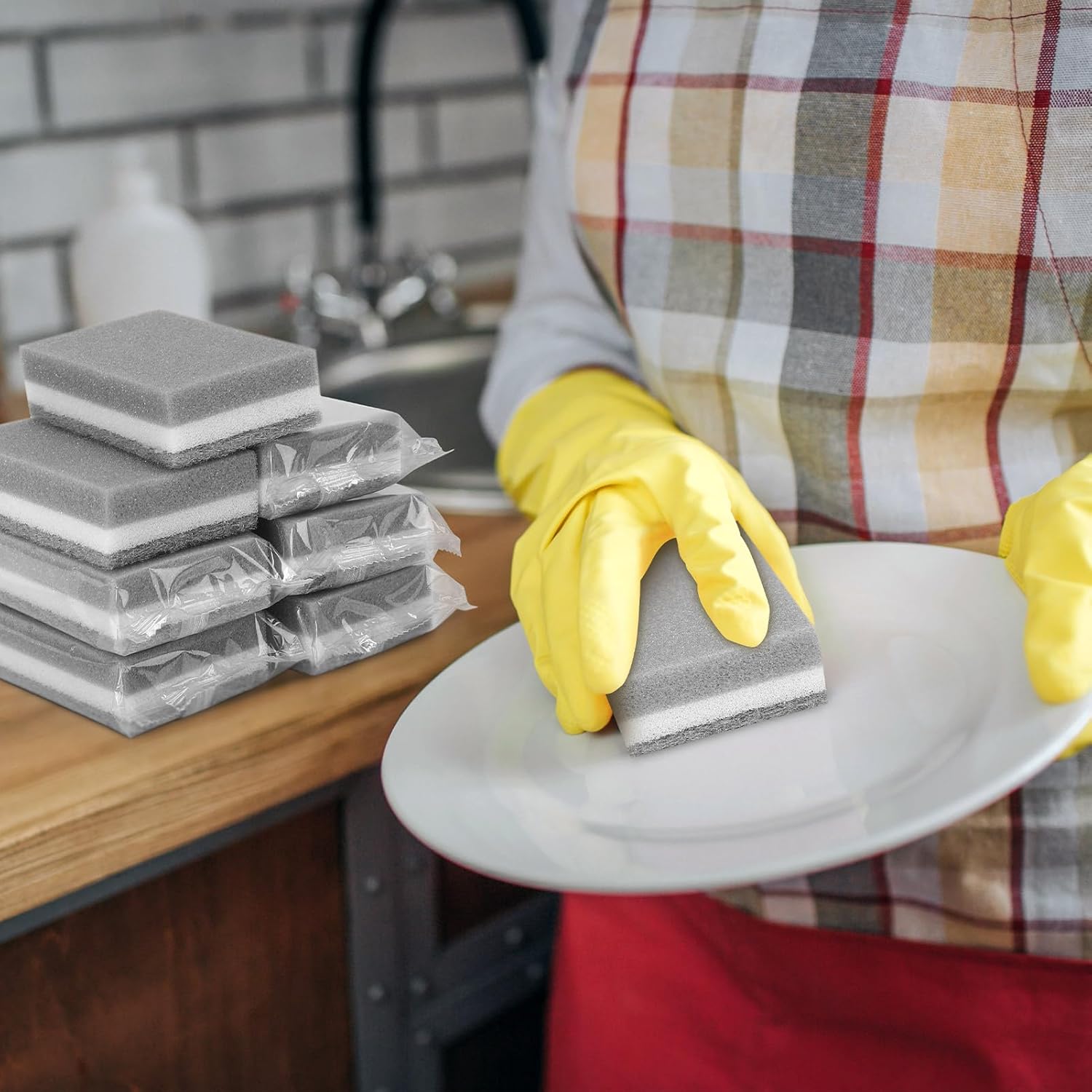 - Reliable Sponge: High-density sponge layer + acrylic decontamination particles, not only strong decontamination but also effective protection of tableware to prevent scratches; after each use, rinse with water, they will dry quickly and will not smell.
