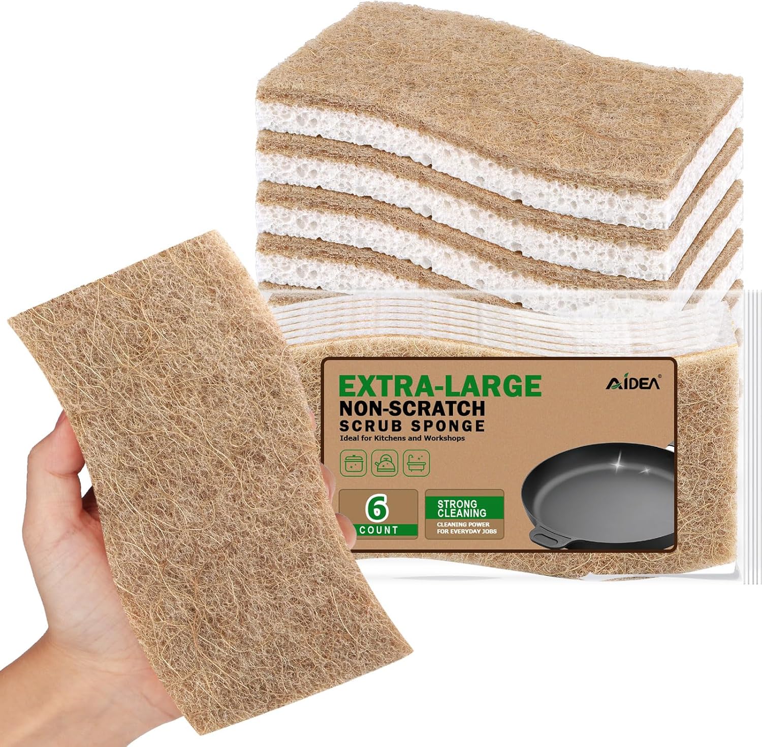 - Long-Lasting & Sustainable: AIDEA Extra Large natural sponges made from white cellulose and sisal fiber; resistant to tearing and wear even after repeated use; ideal for tough burned food stains; ensures extended use
