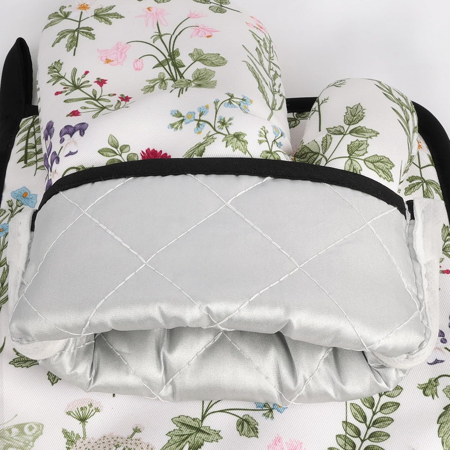 Floral Oven Mitts and Pot Holders Sets Wildflower Oven Gloves Heat Resistant 4 Pcs Pretty Decorative Kitchen Hot Pads and Mitts for Baking Cooking Grilling