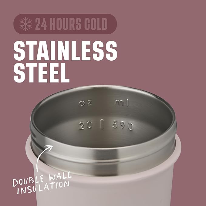 BlenderBottle Strada Sleek Shaker Cup Insulated Stainless Steel Water Bottle with Wire Whisk, 25-Ounce, Red/Tan (Sahara Sunset)