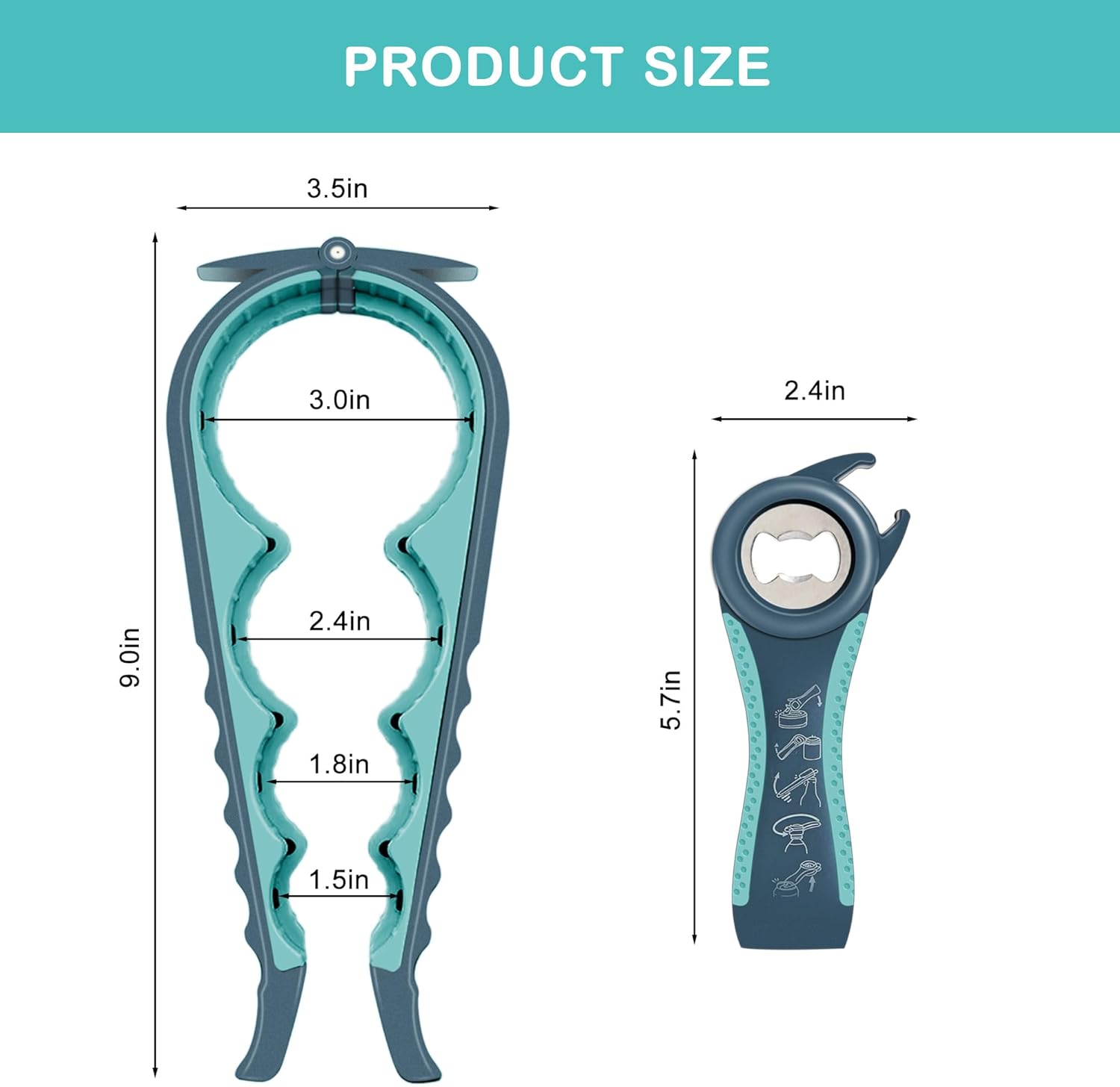 - Packaging information - You will receive a 4- in- 1 Jar opener, a 5-in-1 Bottle operer, These tools can be easily stored or hung anywhere without regular maintenance, reusable and useful, It is an indispensable multifunctional kitchen tool in life, enough to meet your daily family needs; it can also be used as a great gift for parents, grandparents, girlfriends, other colleagues and friends.