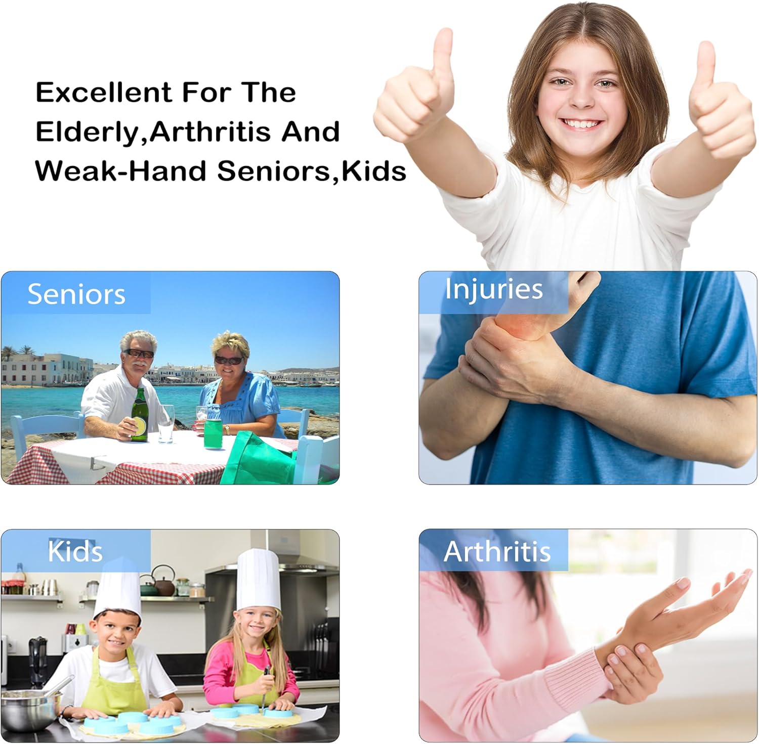 - Specially designed for weak hands - It’s difficult for seniors and arthritis, rheumatoid sufferers, limited hand strength mobility or hand injuries sufferers to complete everyday tasks, especially while cooking. The HUMANFUN set will give your hands the power to open any jar, can or bottle. practical, convenient, save your time and strength, and putting NO extra stress on your fragile hand joint and ligaments!