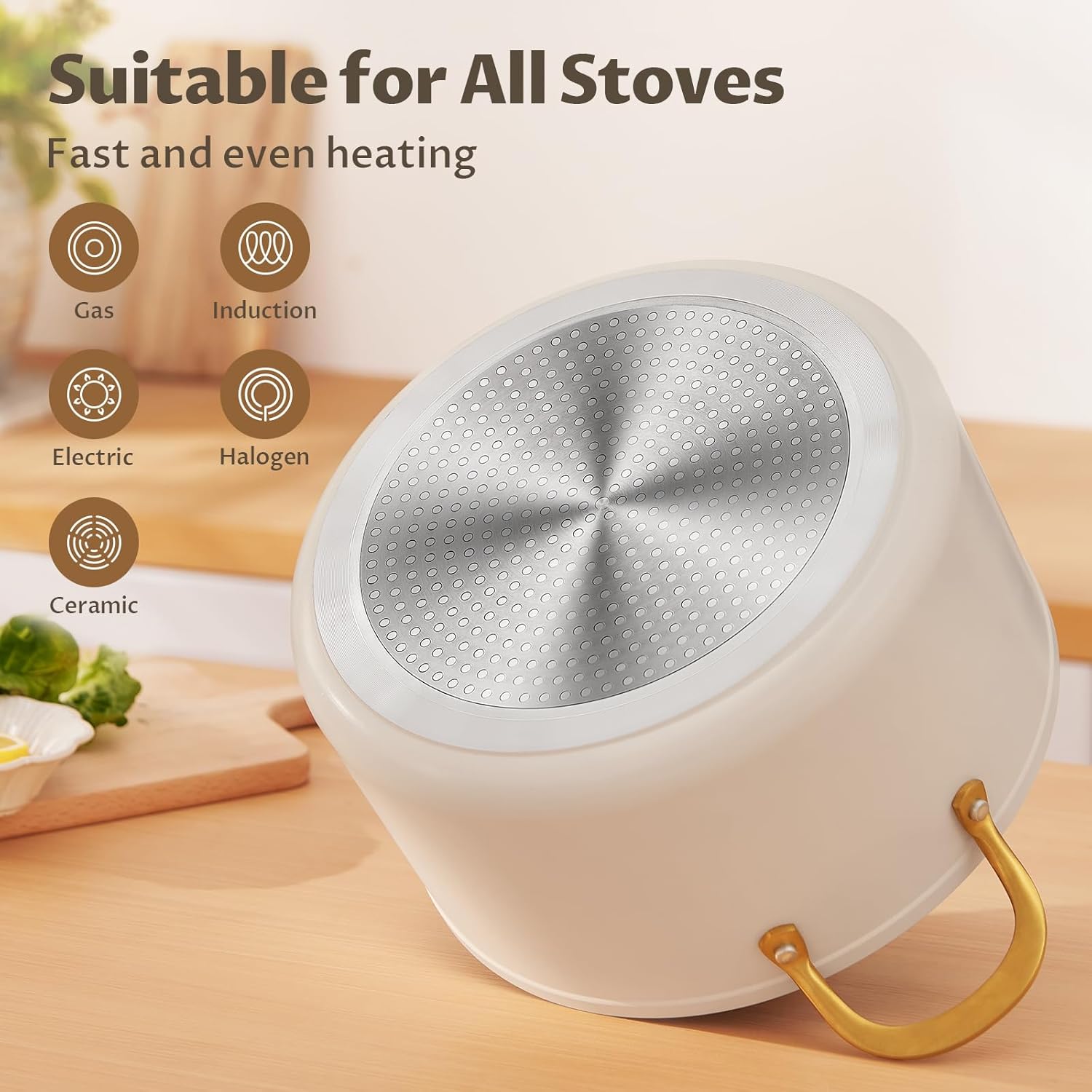 BEZIA Non Stick Stock Pot With Lid, 12 Quart Large Stockpot for Catering for Groups and Events, Induction Cooking Pot for All Stoves, Sturdy & Double Handle, Ideal for Soups & Stews, Cream