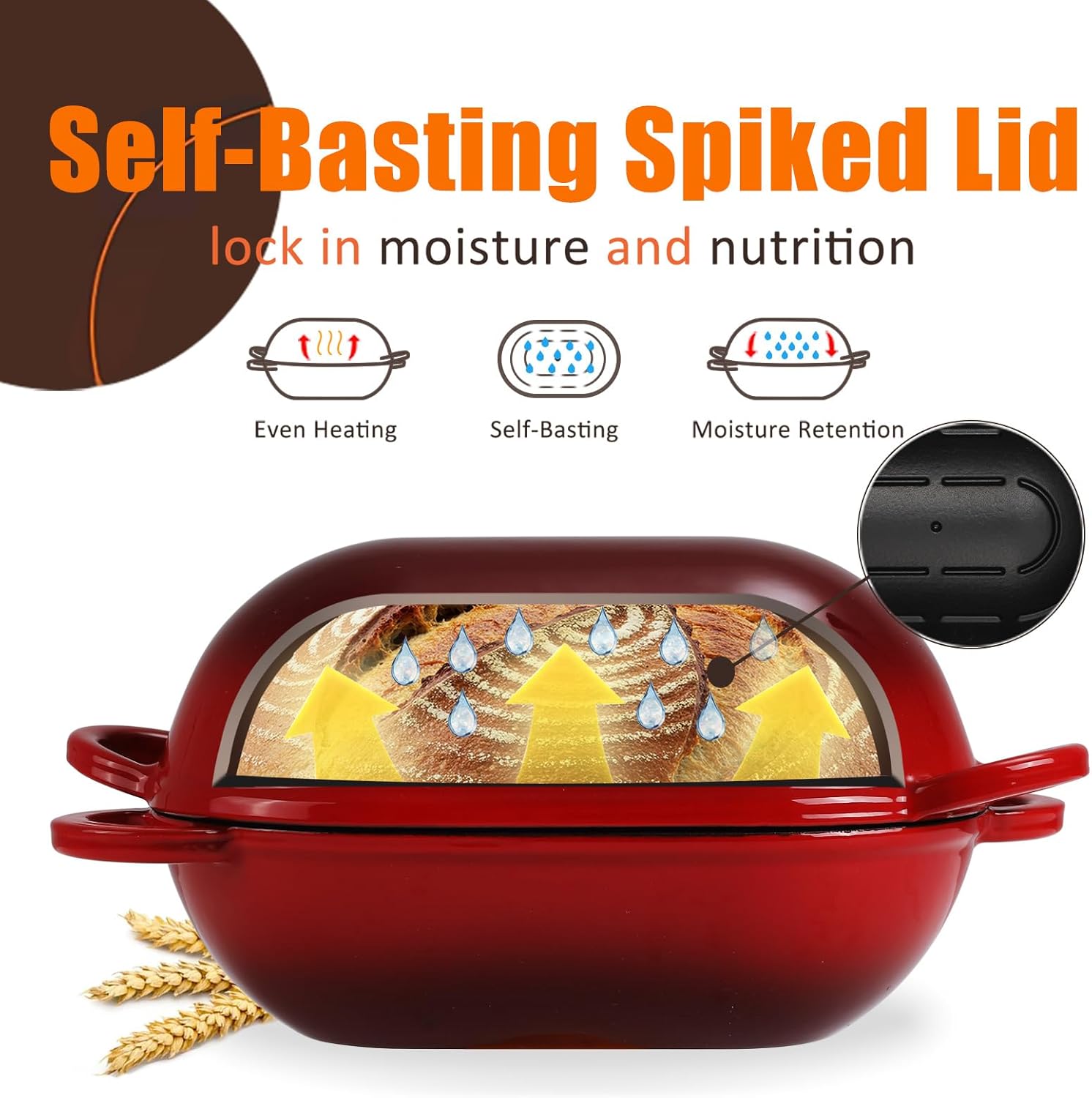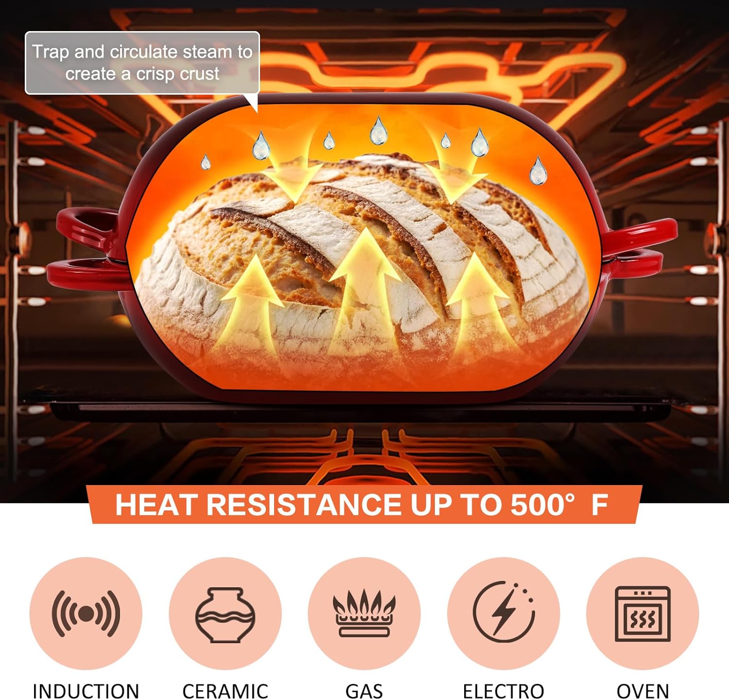 - Even Heat Distribution: This oval bread dutch oven is made of cast iron, which absorbs, retains and distributes heat better than other bakeware, allowing for even heat distribution for consistent baking. From crust to crumb, your loaves will bake with a consistent texture and taste