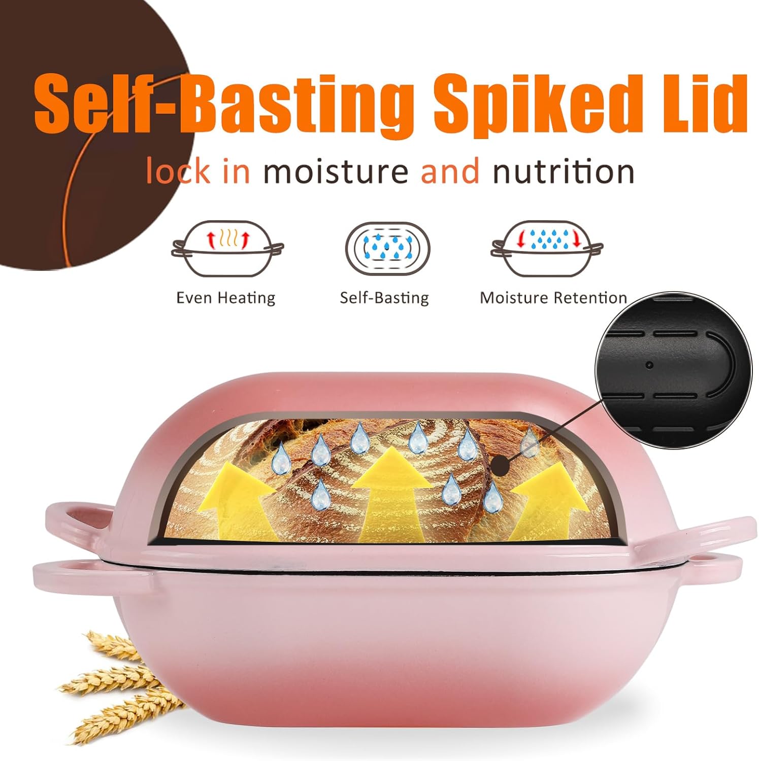 - Even Heat Distribution: This oval bread dutch oven is made of cast iron, which absorbs, retains and distributes heat better than other bakeware, allowing for even heat distribution for consistent baking. From crust to crumb, your loaves will bake with a consistent texture and taste