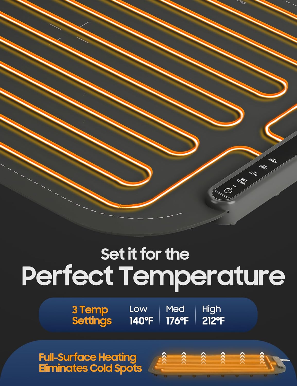 - A Must-Have for Hosts and Home Cooks: From casual weeknight dinners to large holiday spreads, this foldable warming mat is a versatile kitchen accessory. Use it as a buffet food warmer, party tray, or countertop warming mat to keep every dish at just the right temperature.