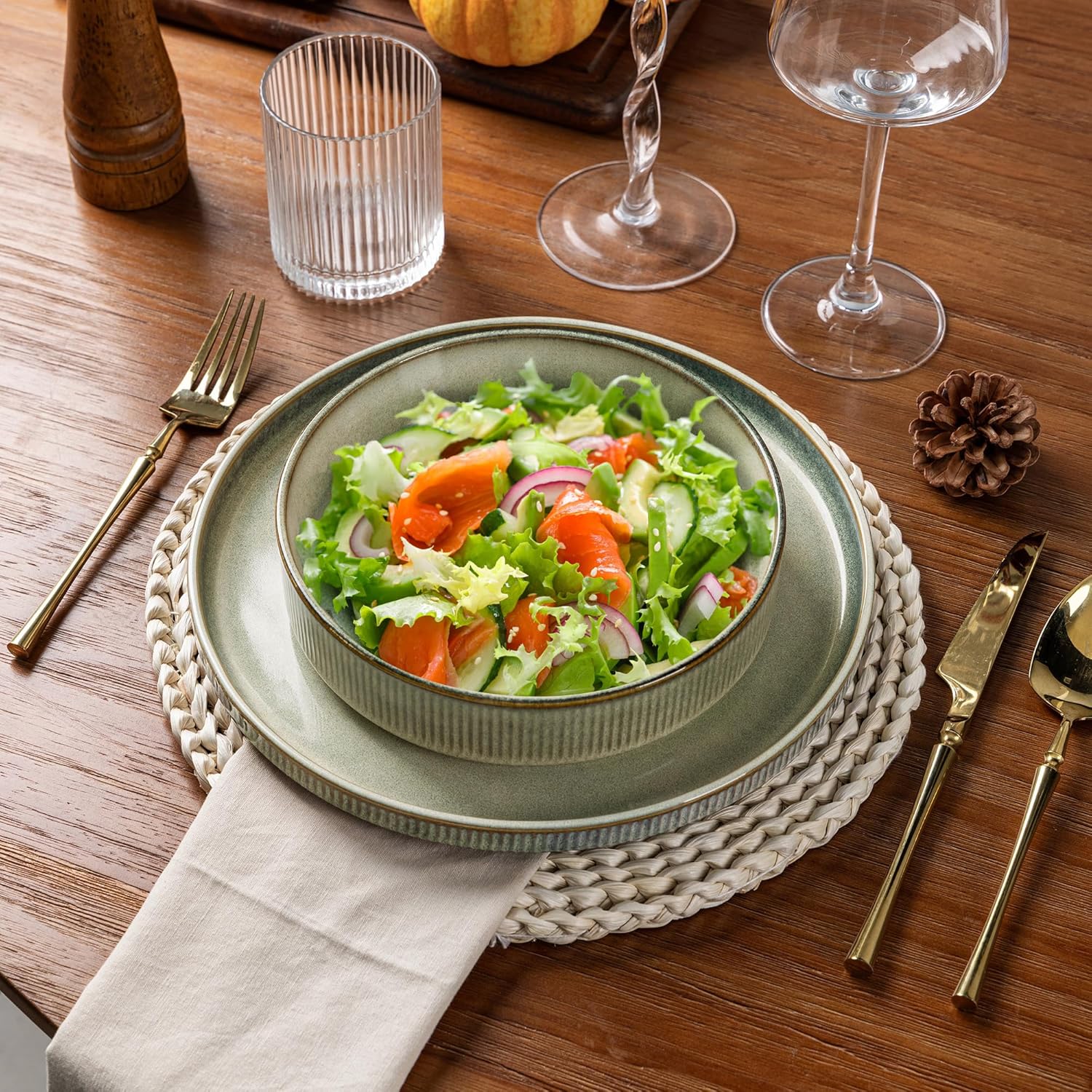 - Healthy, Lead-Free & Chip-Resistant: Crafted from premium, double-fired ceramic, this dinnerware is lead-free and cadmium-free, ensuring no harmful chemicals leach into your food. The durable stoneware construction makes it exceptionally chip-resistant and built for long-lasting daily use.
