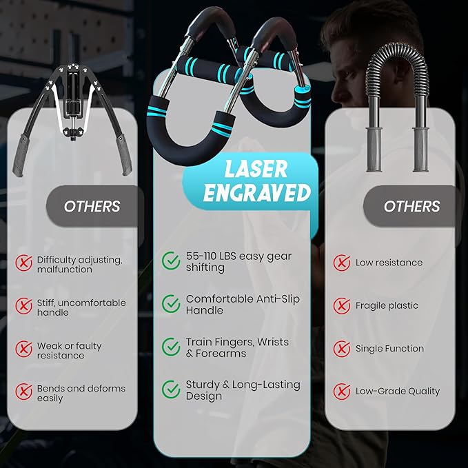 - 2-IN-1 STRENGTH TRAINING KIT: Includes the Marfs Twister Arm Trainer (55–110 lbs) and Adjustable Hand Grip Strengthener (22–132 lbs). Together, they provide a complete workout solution for building upper and lower body strength. Perfect for targeting arms, shoulders, chest, and forearms.