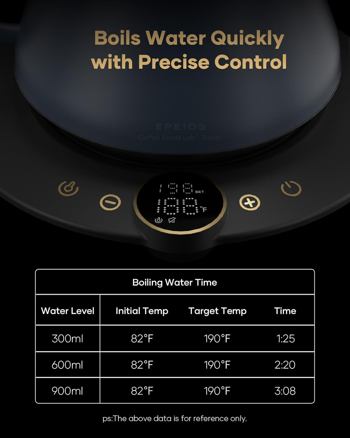 - Precision Heating & Pour Control: The intelligent base maintains your set temperature within ±1℉ for optimal extraction. The S-shaped spout delivers a steady, controlled pour - ensuring consistency in every cup.