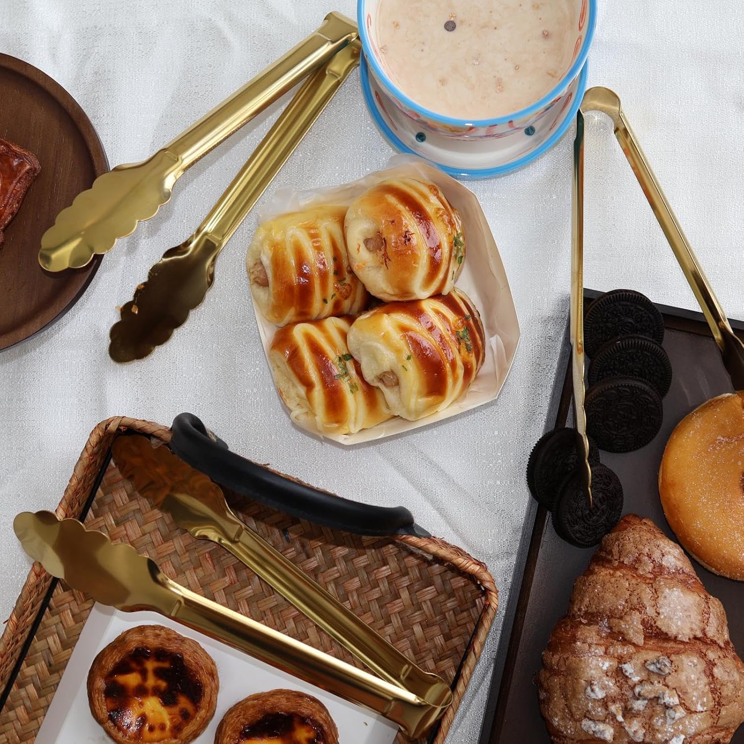 - charcuterie boards and various toppings like lettuce, onions, tomatoes, and pickles. Durable and Reusable Tongs: With a length of 9 inches, these gold - plated stainless steel tongs are suitable for serving a wide range of dishes, including salads, steaks, and desserts. They are perfect for both entertaining guests and everyday use, making them an essential addition to your kitchen.