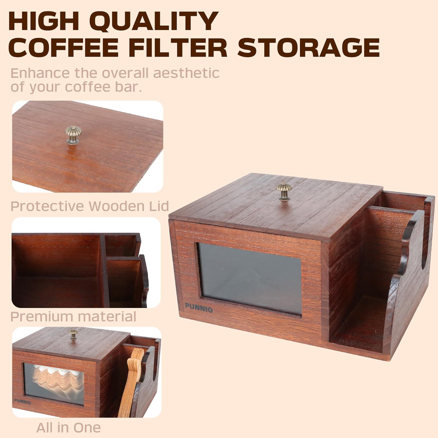 - Innovative Design:Our coffee filter storage combines a stylish holder and a dedicated storage box, thoughtfully designed to accommodate various types of coffee filters. The coffee filter holder keeps filters readily accessible, while the storage box protects them from dust. This all-in-one coffee filter holder is perfect for any coffee enthusiast, ensuring your brewing setup is both organized and efficient.