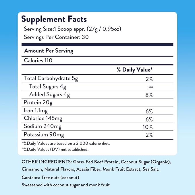- High Protein, Low Sugar: Prime cinnamon roll protein powder delivers 21g+ of bioavailable complete protein made from grass fed beef protein powder, making it an excellent choice for your keto, paleo, carnivore, or protein-forward diet. Unlike many other protein isolate powders, it contains no added sugar, soy, dairy, gluten, egg, or whey. Equip’s clean formula supports bloat-free nutrition and delivers the same amount of protein as a 4oz serving of steak.