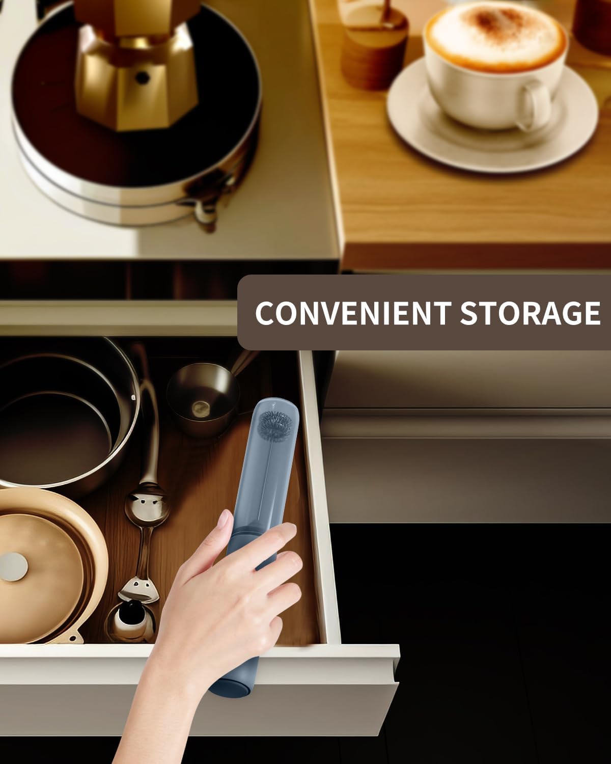 - EASY TO STORE AND CARRY: This electric milk frother features a storage tube to protect against dust and keep the whisks clean. Its lightweight and portable design allows you to easily carry it in your bag for use in hotels, offices or outdoor settings