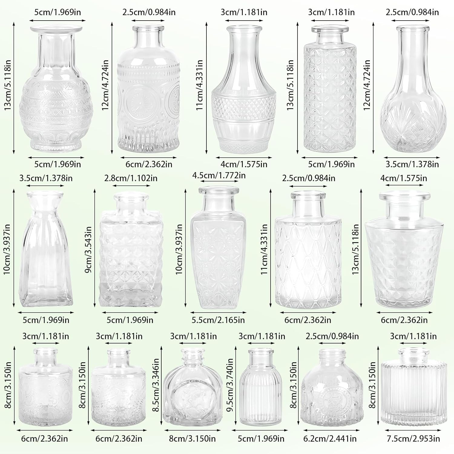 Glass Bud Vase Set of 16 Pcs, Small Clear Bud Vases for Flowers, Vintage Vases for Centerpiece Table Wedding Decorations Home Decor Glass Bottles for Birthday Party Anniversary