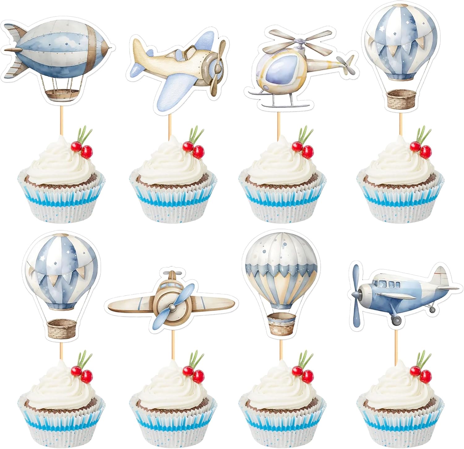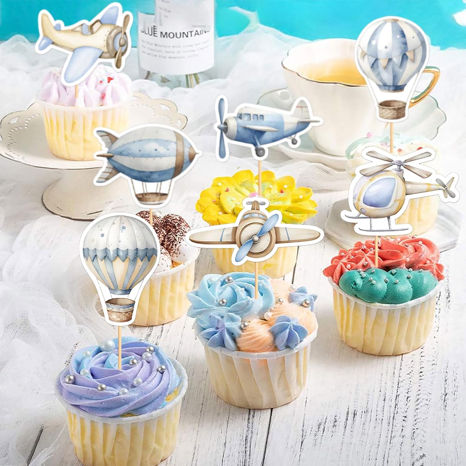35PCS Airplane Cupcake Toppers Hot Air Balloon Helicopter Travel Themed Party Decorations Baby Shower Kids Boys Girls Birthday Party Cake Decorations Supplies