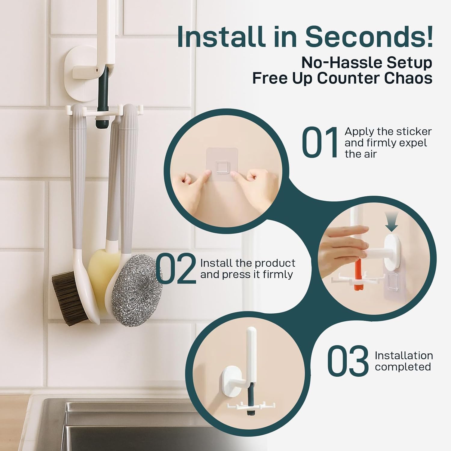 - Space-Saving Wall Mount -Keep yourcountertop neat and organized. Theincluded adhesive wall holder allows you tohang, air-dry, and store your brushes easilyno drilling, no clutter, just a cleaner kitchen space.(Provides hard bristle brush replacement heads,Quick purchase ASIN: B0FD9PWFLF)