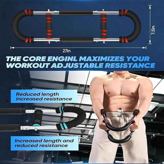- [Full upper body fitness equipment] Portable and detachable Twister Arm Trainer as your personal workout trainer and helping you get a killer chest workout, Through the training guide chart. Strength bar work multiple muscle groups with precision, including chest, arms, biceps, abs, shoulders and back, and thigh muscles.