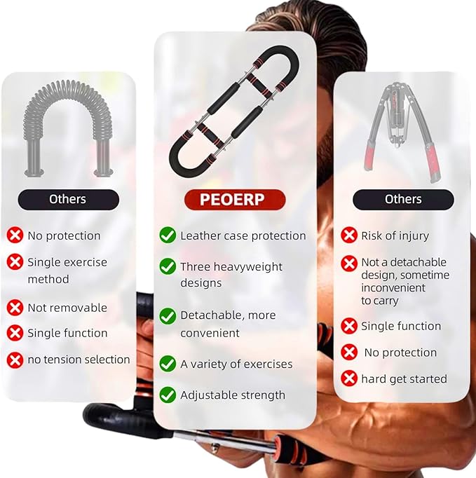 - [PEOERP ARM TRAINER] Twister arm trainer regarded as powerful assistants for upper body muscle training. Whether it's the biceps, triceps, deltoids, pectoralis major, or even leg muscles, etc, they can all receive effective stimulation and exercise, helping you shape a solid, strong, and well-defined upper body.