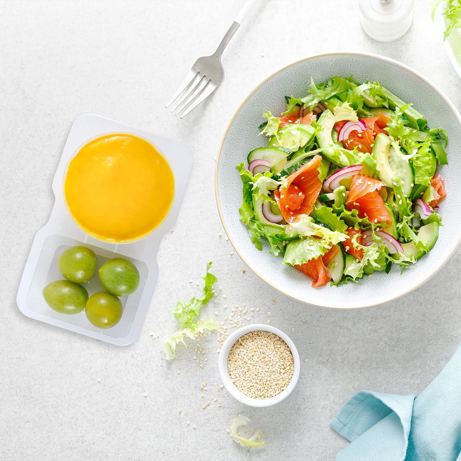 - Great for on the go: The reusable snack containers with lids can be a perfect case for road trip snacks! It can be used both for condiments and for snacks. Just put pepperoni in the round part and little cheese cubes in the rectangular part
