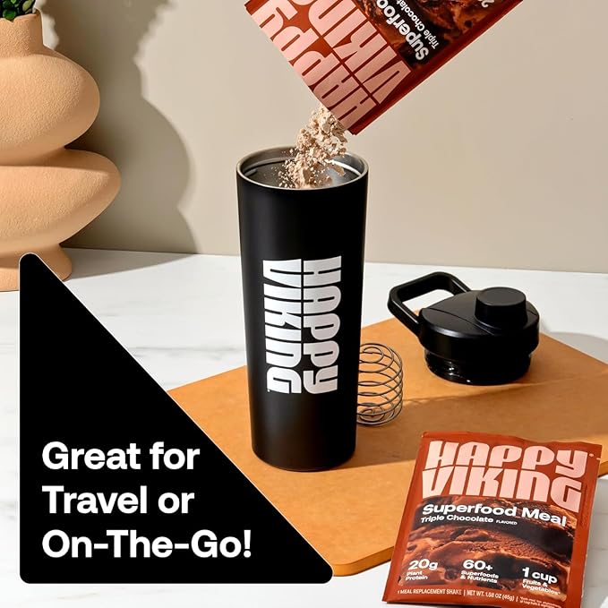 Happy Viking Triple Chocolate Plant Protein Powder, Created by Venus Williams, 20G Protein, Low Carb, Keto, Vegan, Gluten-Free, Non-GMO, Superfoods, Complete Meal Replacement, 8 Single Serve Packs
